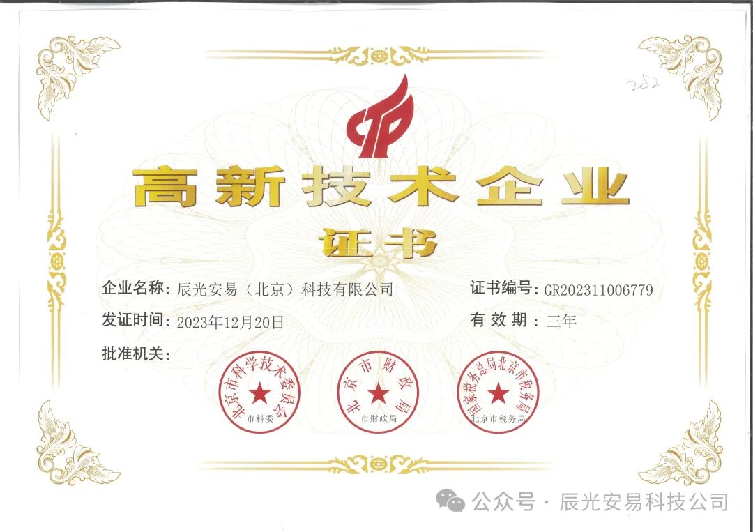 辰光安易(北京)科技有限公司被认定为“国家高新技术企业”,这一荣誉是对辰光安易在科技领域的努力和成果的认可。