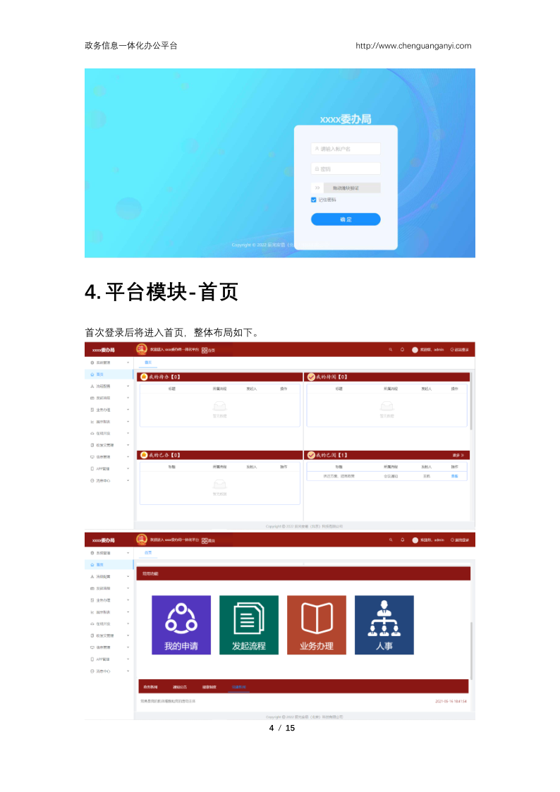“一体化信息办公平台”是辰光安易公司专门面对党政机关、行政事业单位定制开发的一体化管理平台。它将日常行政办公、信息交流、文档管理与行政事业单位的常规业务集成在一起,实现所有数据的互通互联,资源共享。既发挥了传统OA的作用,实现人员的协同在线工作。